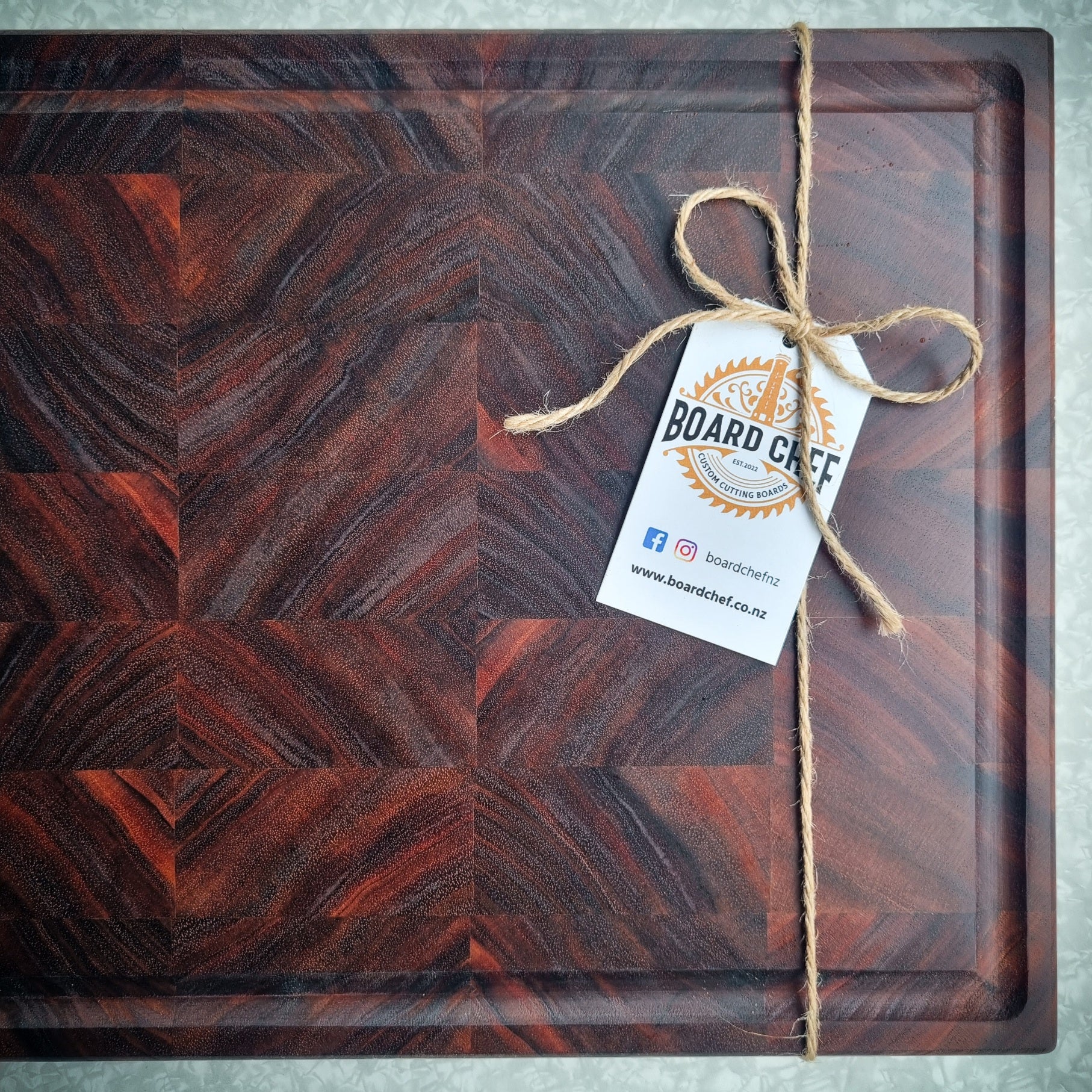 Crafted from NZ grown Tasmanian Blackwood, this end-grain chopping board showcases the perfect balance of strength, function, and natural beauty. Designed for those who appreciate fine craftsmanship, this board combines durability with the unmistakable warmth and depth of one of Australasia’s most sought-after hardwoods.